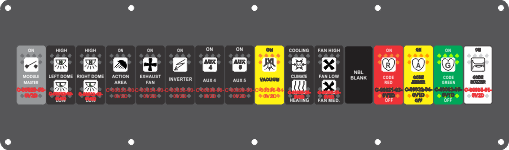 |  Faceplate  Plate  Switch 1  Switch 2  Switch 3  Switch 5  Switch 6  Switch 7  Switch 8  Switch 9  Switch 10  Switch 11  Power Center 1  Power Center 2 | Plate Name: Ambulance Dash Switch Part #: FAC-03006, Priority Emergency Vehicles Documents: RCT-03006-0__02.pdfSwitch 1 Name: "EMERGENCY MASTER" Red Switch Cap single White Lens ON-OFF Part #: C-00020-03-0V1D Documents: C-00020-03-0V1D