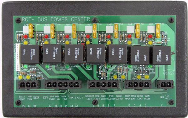 Requires Data Cable, DAT-01350-00XX0 (XX) determines length. | | | Documents: RCT-01437-00000, Bus Power Center, Plug-In-Play.To Complete System; Add RCT-01028-00000, Five Position Switch Assembly. (Door, Dome, Side Light, Aux.1 & Aux.2 Switches.)
