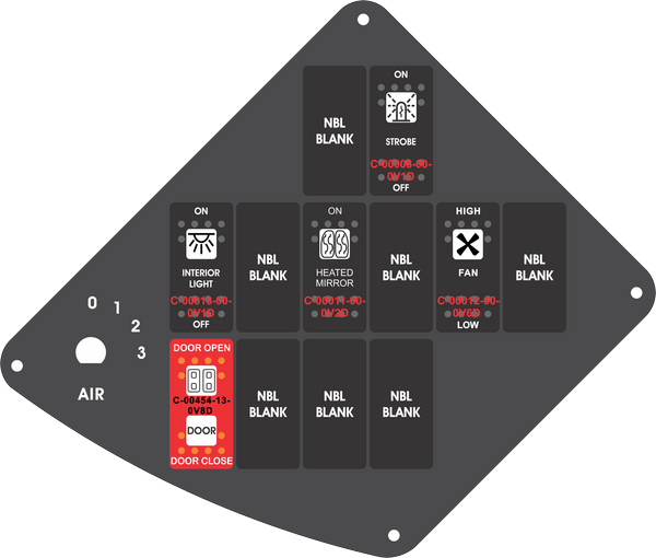 Switch 9 Name: "DOOR SYMBOL" Red Paddle Cap (ON)OFF(ON)