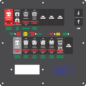 |  Faceplate  Plate  Cable 1  Cable 2  Cable 3  Switch 1  Switch 2  Switch 3  Switch 4  Switch 5  Switch 6  Switch 7  Switch 8  Switch 9  Switch 10  Switch 11  Switch 12  Switch 13  Switch 14  Switch 15  Power Center 1  Power Center 2  Power Center 3  Power Center 4 | Plate Name: Ambulance Dash Switch Part #: FAC-03241, Priority Emergency Vehicles Documents: RCT-03241-0__03.pdfCable 1 Name: DAT-01348-00XX0 (8 Conductor) Part #: DAT-01348-00XX0 Documents: DAT-01348-00XX0, Eight Conductor Data Cable. Eight conductor, 22 awg.